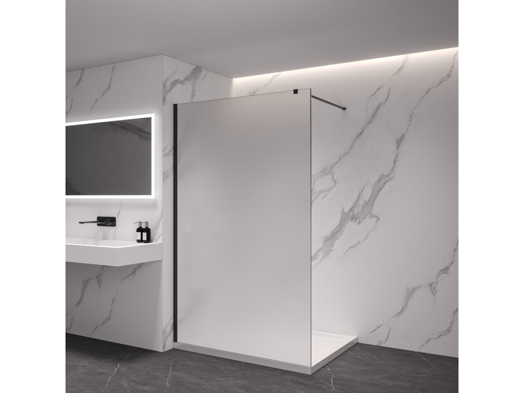 CERANO - Kabina prysznicowa typu walk-in Onyx Cube L/P - 8 mm - wspornik kwadratowy - matowa czerń, szkło mrożone - 120x200 cm