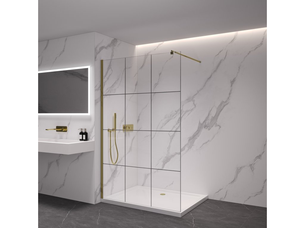 CERANO - Kabina prysznicowa typu walk-in Onyx Cube L/R - 8 mm - wspornik kwadratowy - szczotkowane złoto, szkło industrialne - 120x200 cm