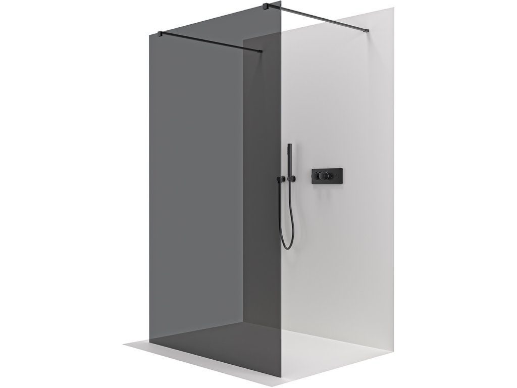 CERANO - Parawan prysznicowy typu walk-in Onyx Duo L/P - 10 mm - wspornik kwadratowy - mat czarny, szkło grafitowe - 120x200 cm
