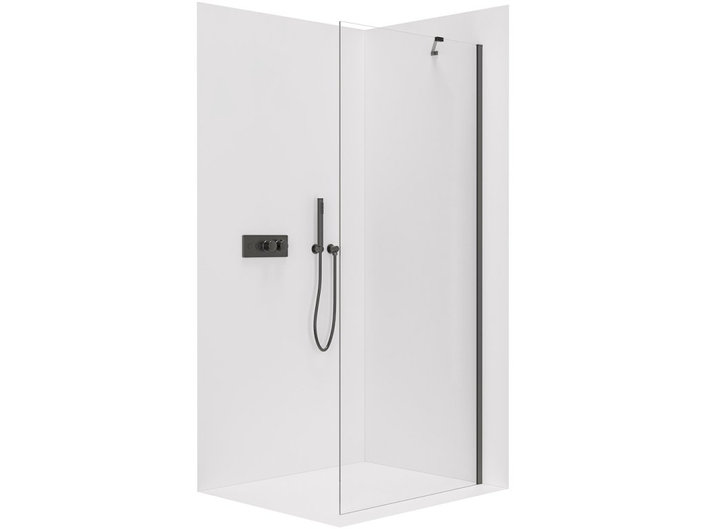 CERANO - Parawan prysznicowy typu walk-in Onyx YL/P - 10 mm - matowa czerń, szkło transparentne - 120x200 cm