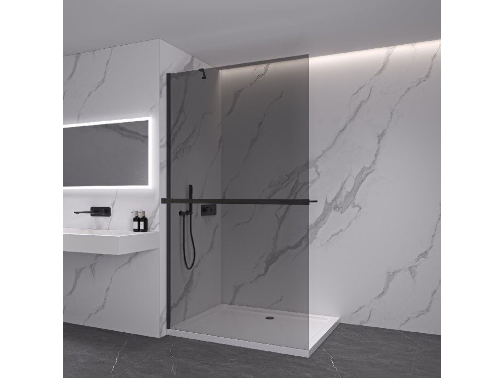 CERANO - Parawan prysznicowy typu walk-in Onyx YL/P - 8 mm + półka/uchwyt na ręcznik - matowa czerń, szkło grafitowe - 120x200 cm