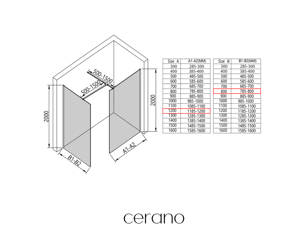 W ramach tej serii oferujemy szeroki wybór wymiarów, aby sprostać zróżnicowanym potrzebom naszych klientów. Wszystkie kabiny prysznicowe, drzwi i parawany Cerano są w pełni kompatybilne z brodzikami Cerano o tych samych wymiarach, co zapewnia bezproblemowy montaż i idealne dopasowanie. Ponadto kabinę prysznicową można elastycznie zamontować – na pasującym brodziku lub bezpośrednio na podłodze, w zależności od preferencji i wyposażenia łazienki.