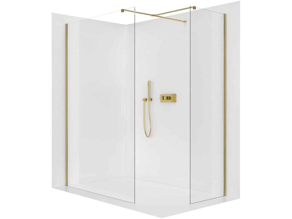 CERANO - Ścianka kabiny prysznicowej typu walk-in Onyx TL/P - 8 mm - wspornik kwadratowy - złoty, szkło transparentne - 120x100x200 cm