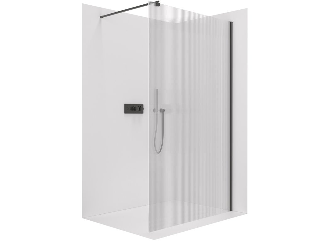 CERANO - Ścianka prysznicowa typu walk-in Onyx Round L/P - 8 mm - wspornik okrągły - matowa czerń, szkło ryflowane - 120x200 cm