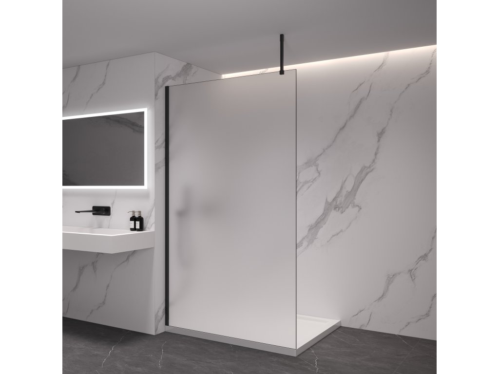 CERANO - Kabina prysznicowa typu walk-in Onyx Top Cube L/P - 8 mm - wspornik kwadratowy - matowa czerń, szkło mrożone - 130x200 cm