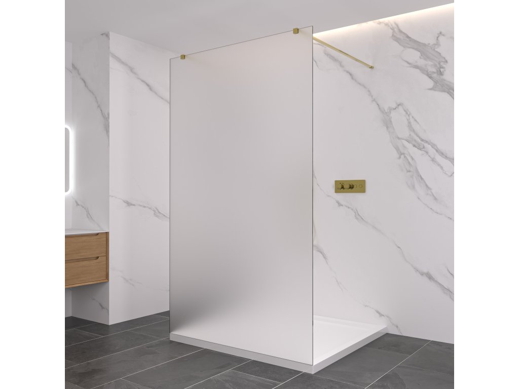 CERANO - Kabina prysznicowa typu walk-in Onyx Duo L/P - 8 mm - wspornik kwadratowy - szczotkowane złoto, szkło mrożone - 140x200 cm
