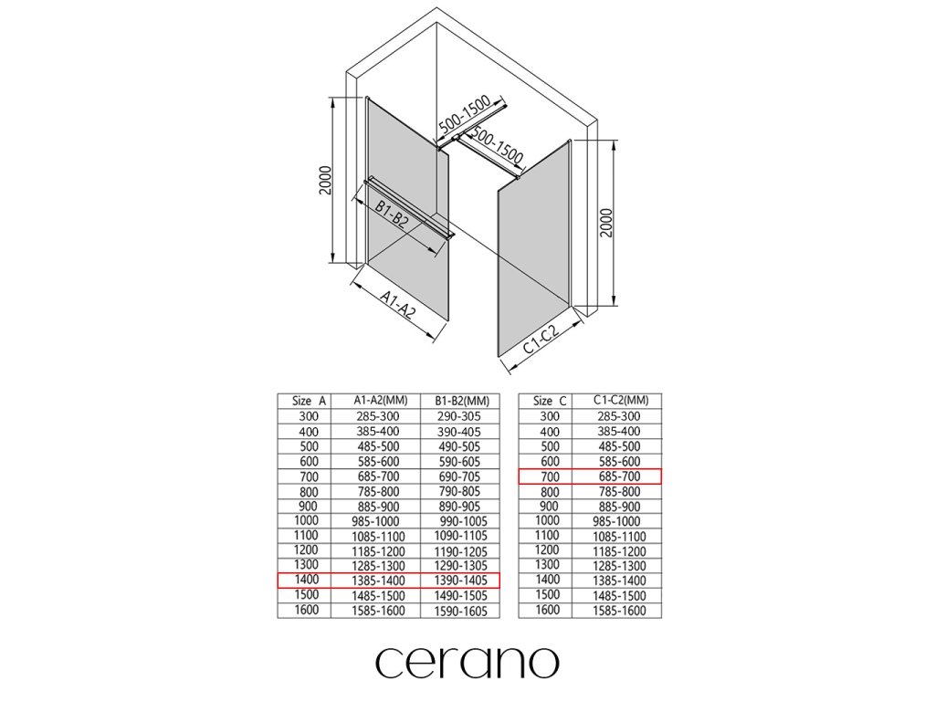 W ramach tej serii oferujemy szeroki wybór wymiarów, aby sprostać zróżnicowanym potrzebom naszych klientów. Wszystkie kabiny prysznicowe, drzwi i parawany Cerano są w pełni kompatybilne z brodzikami Cerano o tych samych wymiarach, co zapewnia bezproblemowy montaż i idealne dopasowanie. Ponadto kabinę prysznicową można elastycznie zamontować – na pasującym brodziku lub bezpośrednio na podłodze, w zależności od preferencji i wyposażenia łazienki.