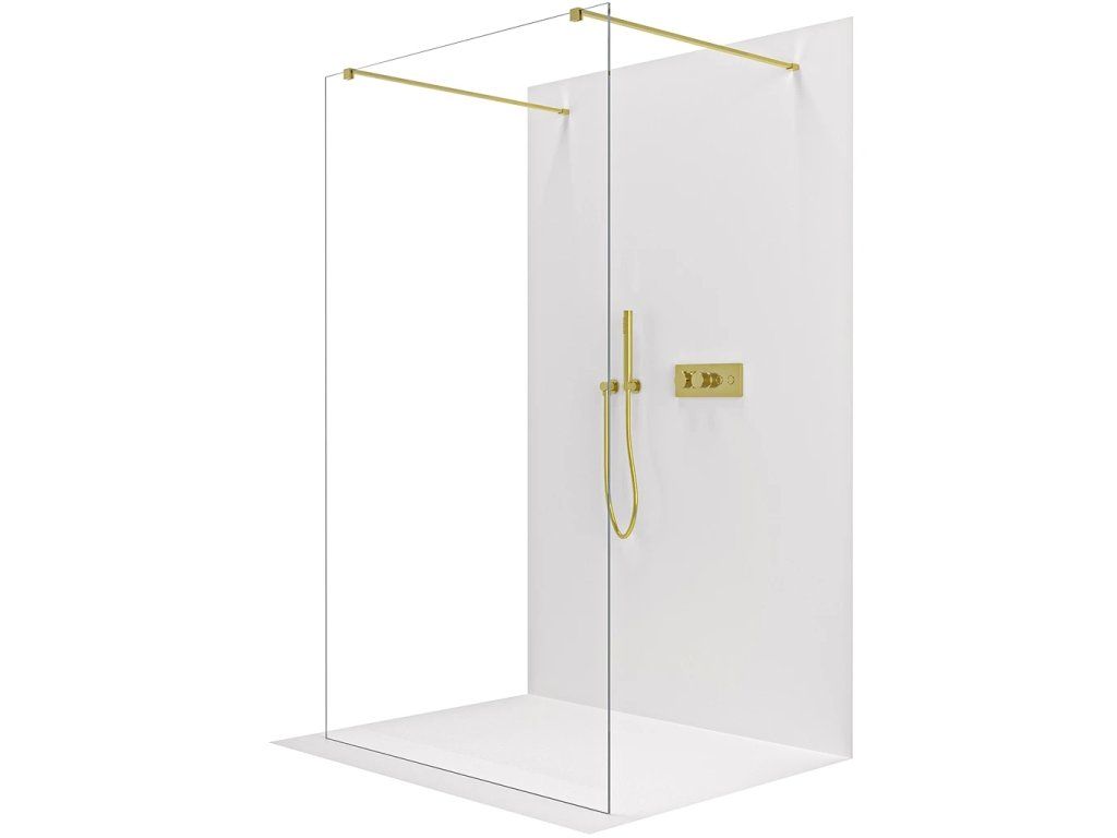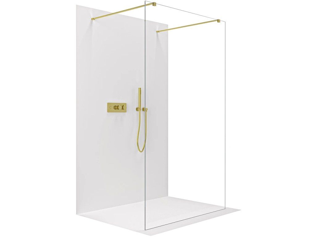CERANO - Ścianka kabiny prysznicowej typu walk-in Onyx Duo L/P - 8 mm - wspornik kwadratowy - złoty, szkło transparentne - 140x200 cm