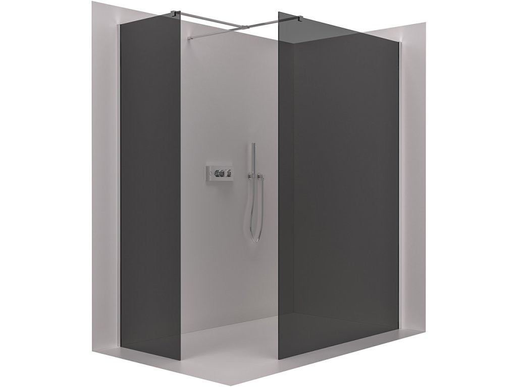 CERANO - Ścianka kabiny prysznicowej typu walk-in Onyx TL/P - 8 mm - wspornik kwadratowy - chrom, szkło grafitowe - 140x140x200 cm