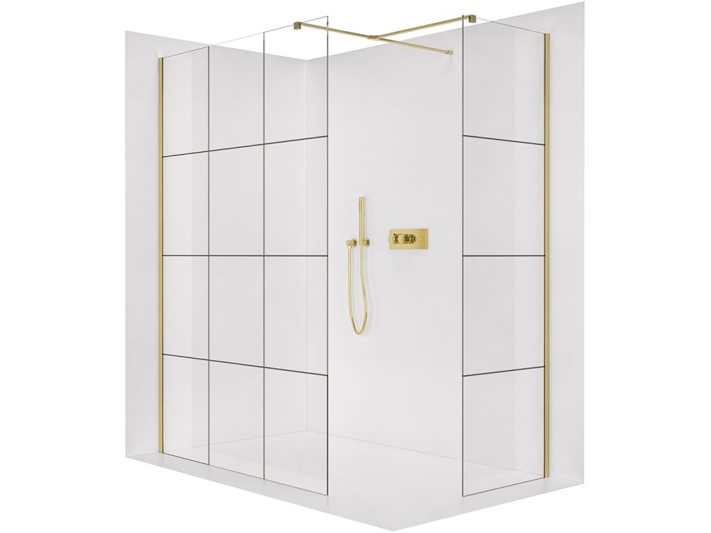 CERANO - Ścianka kabiny prysznicowej typu walk-in Onyx TL/P - 8 mm - wspornik kwadratowy - złoty, szkło industrialne - 140x100x200 cm