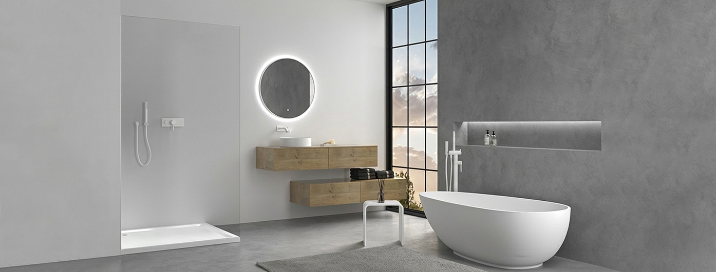 Farba jest nakładana metodą natrysku elektrostatycznego, a następnie wypalana w wysokiej temperaturze, dzięki czemu jest trwale związana z powierzchnią aluminium. Proces ten zapewnia doskonałą przyczepność, wysoką wytrzymałość mechaniczną i stabilność koloru nawet w wymagających warunkach łazienkowych. Powierzchnia nie łuszczy się, nie odpryskuje i jest odporna na wilgoć, standardową konserwację i codzienne zużycie – profile zachowują swój wygląd przez wiele lat.