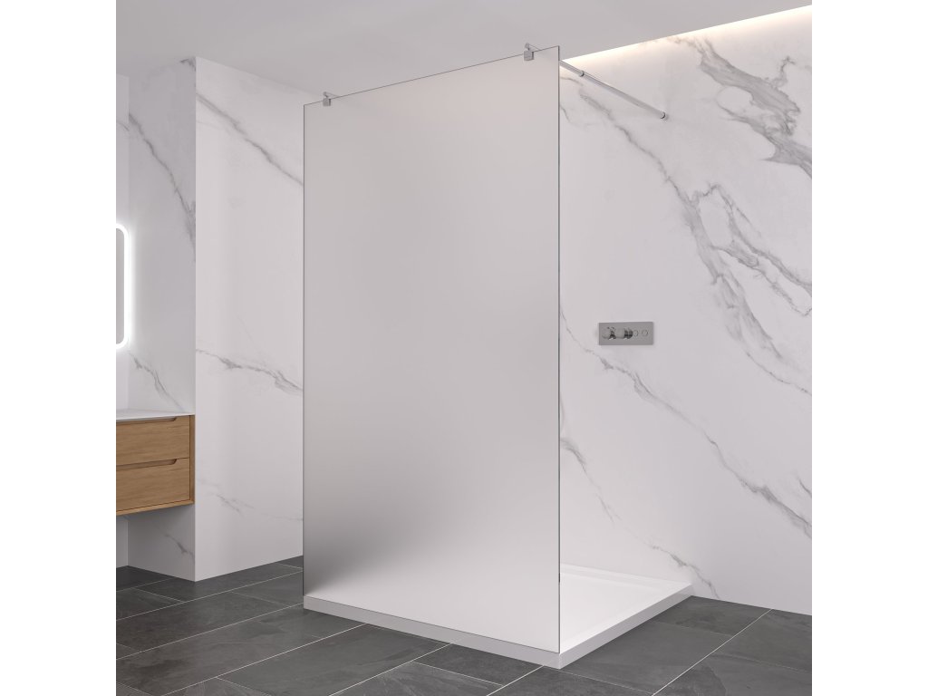 CERANO - Parawan prysznicowy typu walk-in Onyx Duo L/P - 8 mm - wspornik okrągły - chrom, szkło mrożone - 150x200 cm