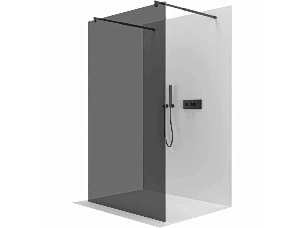 CERANO - Parawan prysznicowy typu walk-in Onyx Duo L/P - 8 mm - wspornik okrągły - mat czarny, szkło grafitowe - 150x200 cm