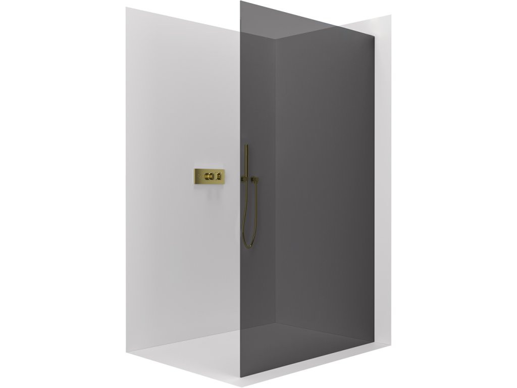 CERANO - Kabina prysznicowa typu walk-in Crystal L/R - 8 mm - system bez rozpórek - szczotkowane złoto, szkło grafitowe - 160x200 cm
