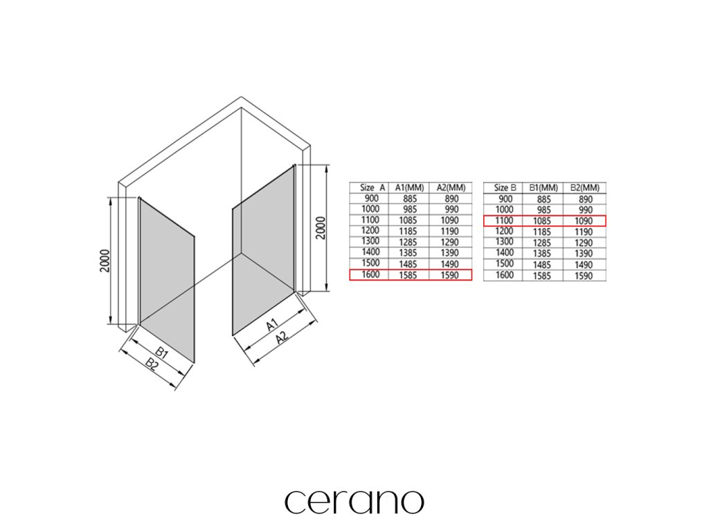 CERANO - Kabina prysznicowa typu walk-in Crystal TL/P - 8 mm - system bezpodporowy - chrom, szkło przemysłowe - 160x110x200 cm