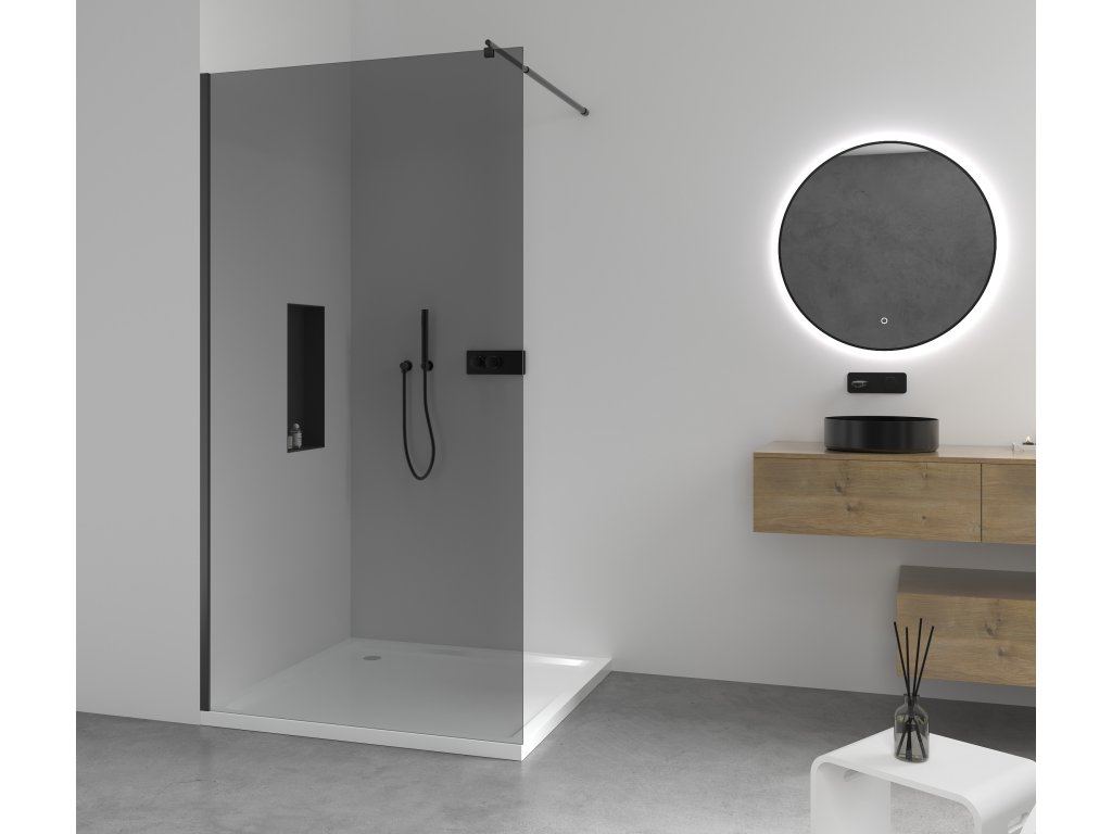 CERANO - Kabina prysznicowa typu walk-in Onyx Round L/P - 10 mm - wspornik okrągły - mat czarny, szkło grafitowe - 160x200 cm