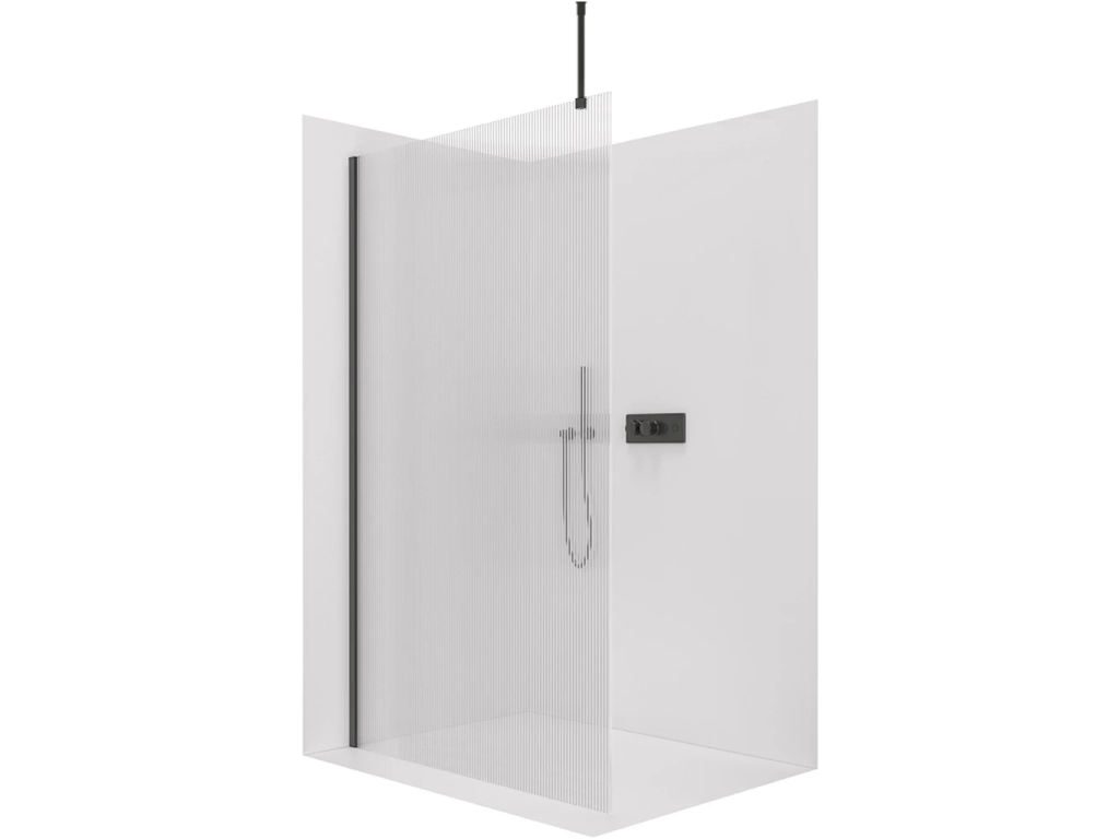 CERANO - Kabina prysznicowa typu walk-in Onyx Top Round L/P - 8 mm - wspornik okrągły - matowa czerń, szkło ryflowane - 160x200 cm
