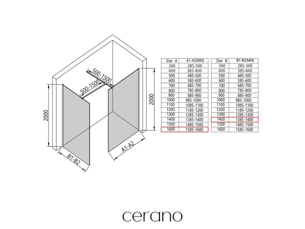 W ramach tej serii oferujemy szeroki wybór wymiarów, aby sprostać zróżnicowanym potrzebom naszych klientów. Wszystkie kabiny prysznicowe, drzwi i parawany Cerano są w pełni kompatybilne z brodzikami Cerano o tych samych wymiarach, co zapewnia bezproblemowy montaż i idealne dopasowanie. Ponadto kabinę prysznicową można elastycznie zamontować – na pasującym brodziku lub bezpośrednio na podłodze, w zależności od preferencji i wyposażenia łazienki.