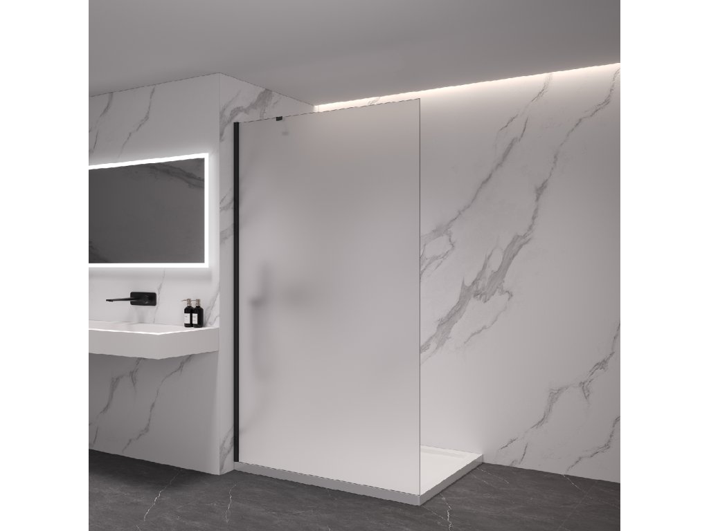 CERANO - Kabina prysznicowa typu walk-in Onyx YL/P - 8 mm - wspornik okrągły - matowa czerń, szkło mrożone - 30x200 cm