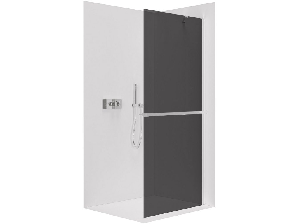CERANO - Parawan prysznicowy typu walk-in Onyx YL/P - 8 mm - wspornik okrągły + półka/uchwyt na ręcznik - chrom, szkło grafitowe - 30x200 cm