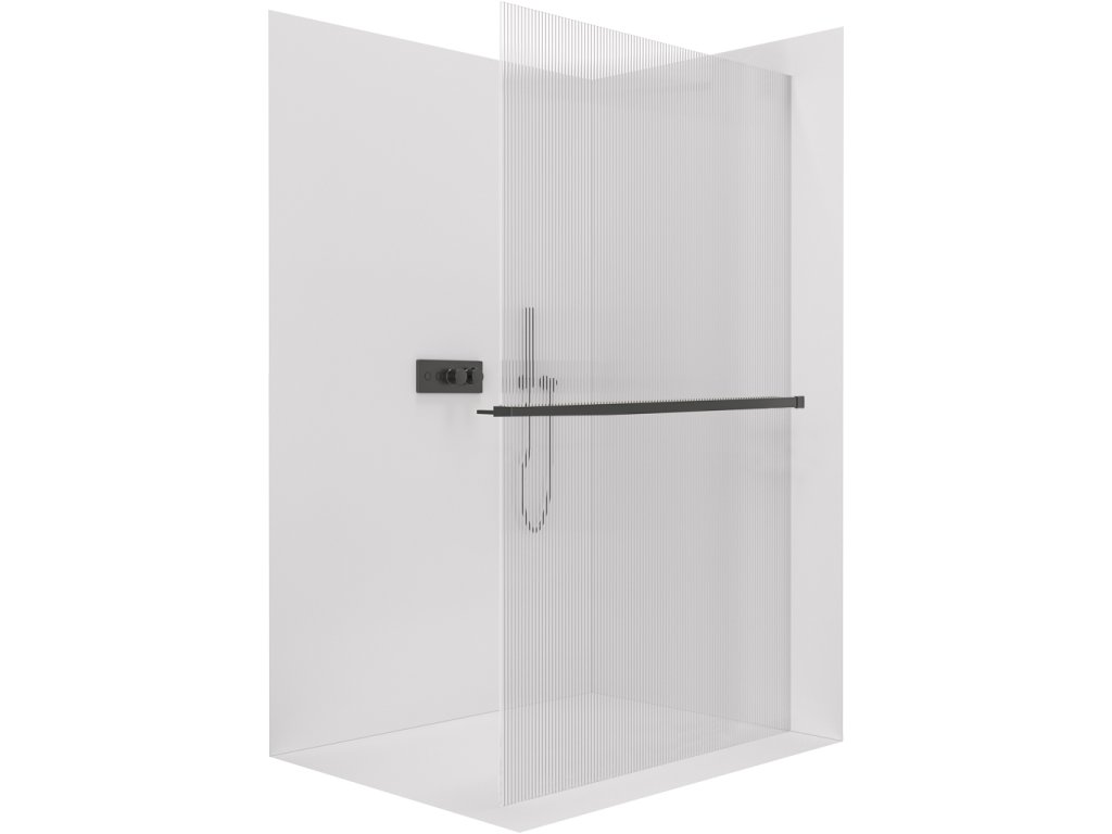 CERANO - Kabina prysznicowa typu walk-in Crystal L/P - 8 mm + półka/uchwyt na ręcznik - system bezpodporowy - czarny mat, szkło ryflowane - 50x200 cm