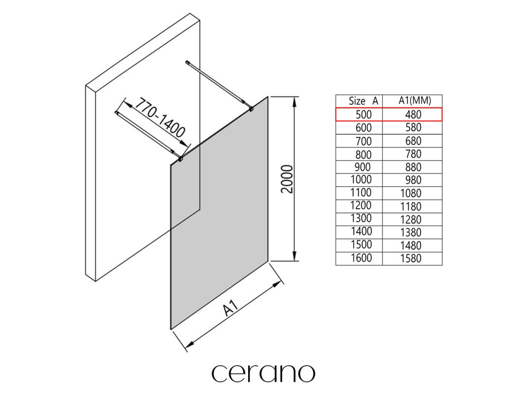 Produkty Cerano wykorzystują wyłącznie szkło o grubości 6 mm, 8 mm lub 10 mm, co znacznie przewyższa standard powszechnie dostępnych produktów na rynku. Wielu konkurencyjnych producentów stosuje szkło o grubości 4 mm lub 5 mm, które jest lżejsze, ale mniej trwałe.