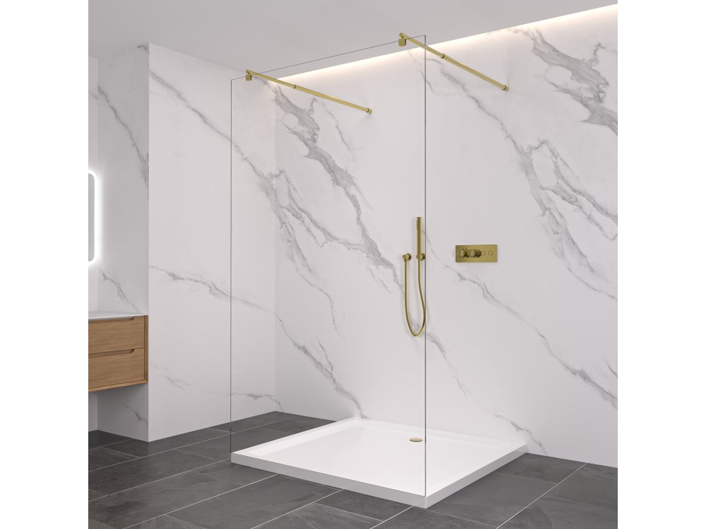 CERANO - Kabina prysznicowa typu walk-in Onyx Duo L/P - 8 mm - wspornik okrągły - szczotkowane złoto, szkło transparentne - 50x200 cm