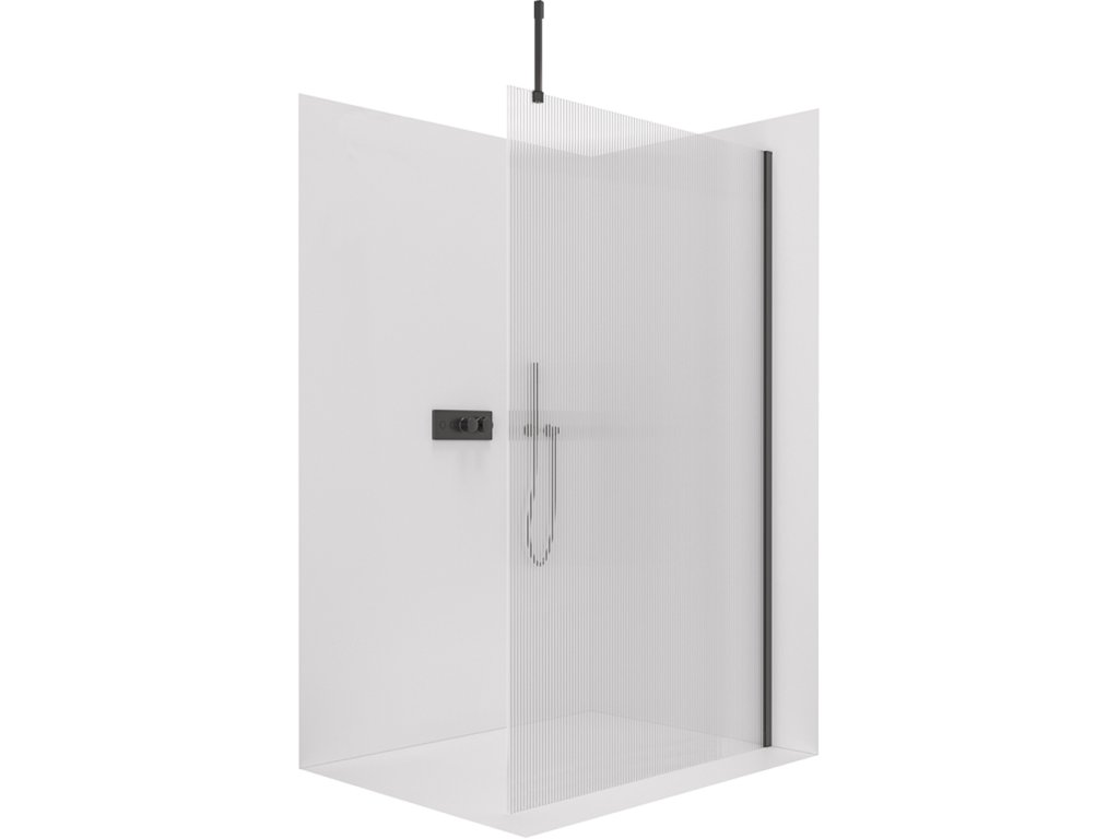 CERANO - Kabina prysznicowa typu walk-in Onyx Top Cube L/P - 8 mm - wspornik kwadratowy - matowa czerń, szkło ryflowane - 50x200 cm