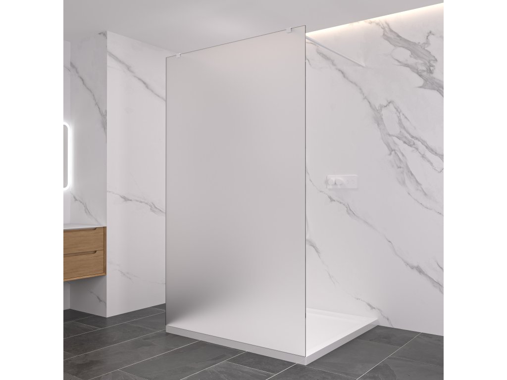 CERANO - Parawan prysznicowy typu walk-in Onyx Duo L/P - 8 mm - wspornik kwadratowy - biały mat, szkło mleczne - 50x200 cm