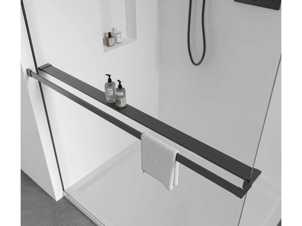 Inteligentne rozwiązanie 2 w 1 do kabin prysznicowych. Zewnętrzny uchwyt na ręczniki, praktyczna półka na kosmetyki i drobiazgi wewnątrz – wszystko pod ręką. Pasuje do kabin prysznicowych o maksymalnej grubości szkła 8 mm . Regulowana szerokość od 30 do 160 cm w zależności od rodzaju kabiny. Oszczędność miejsca, nowoczesny wygląd i praktyczne zastosowanie w jednym.