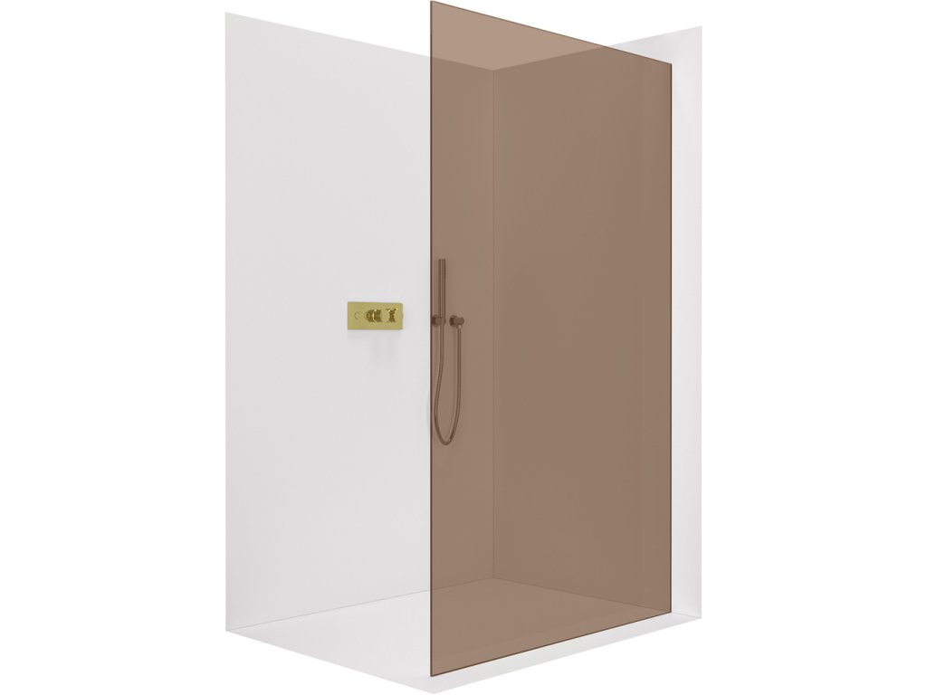 CERANO - Kabina prysznicowa typu walk-in Crystal L/R - 8 mm - system bezpodporowy - szczotkowane złoto, szkło brązowe - 60x200 cm