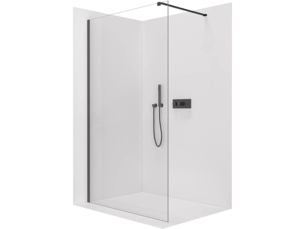 CERANO - Kabina prysznicowa typu walk-in Onyx Cube L/P - 8 mm - wspornik kwadratowy - matowa czerń, szkło transparentne - 60x200 cm