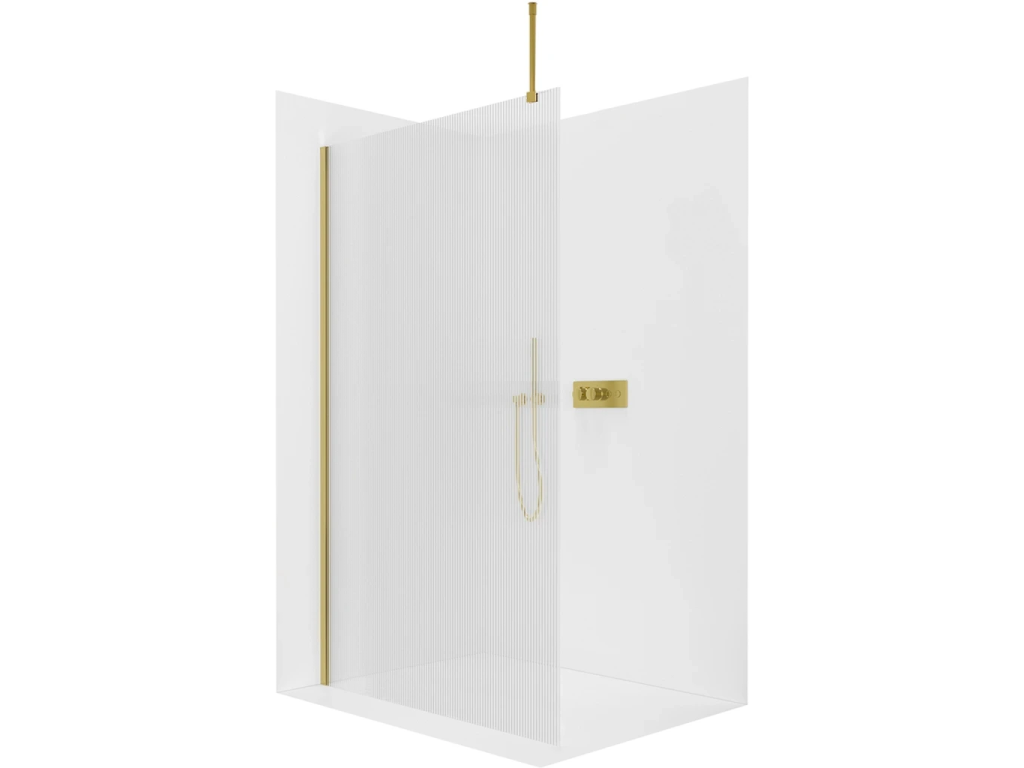 CERANO - Kabina prysznicowa typu walk-in Onyx Top Round L/P - 8 mm - wspornik okrągły - złoty, szkło ryflowane - 60x200 cm