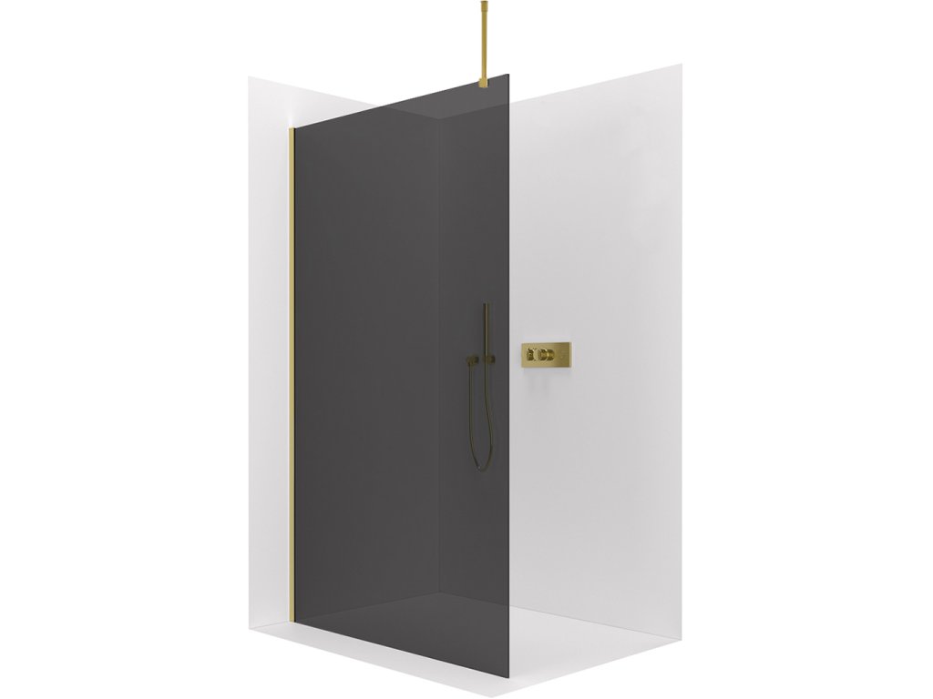 CERANO - Ścianka kabiny prysznicowej typu walk-in Onyx Top Round L/P - 8 mm - wspornik okrągły - złoto, szkło grafitowe - 60x200 cm