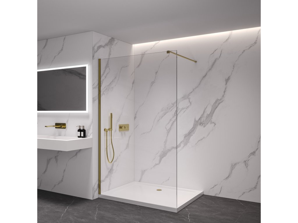 CERANO - Kabina prysznicowa typu walk-in Onyx Cube L/P - 8 mm - wspornik kwadratowy - szczotkowane złoto, szkło transparentne - 70x200 cm
