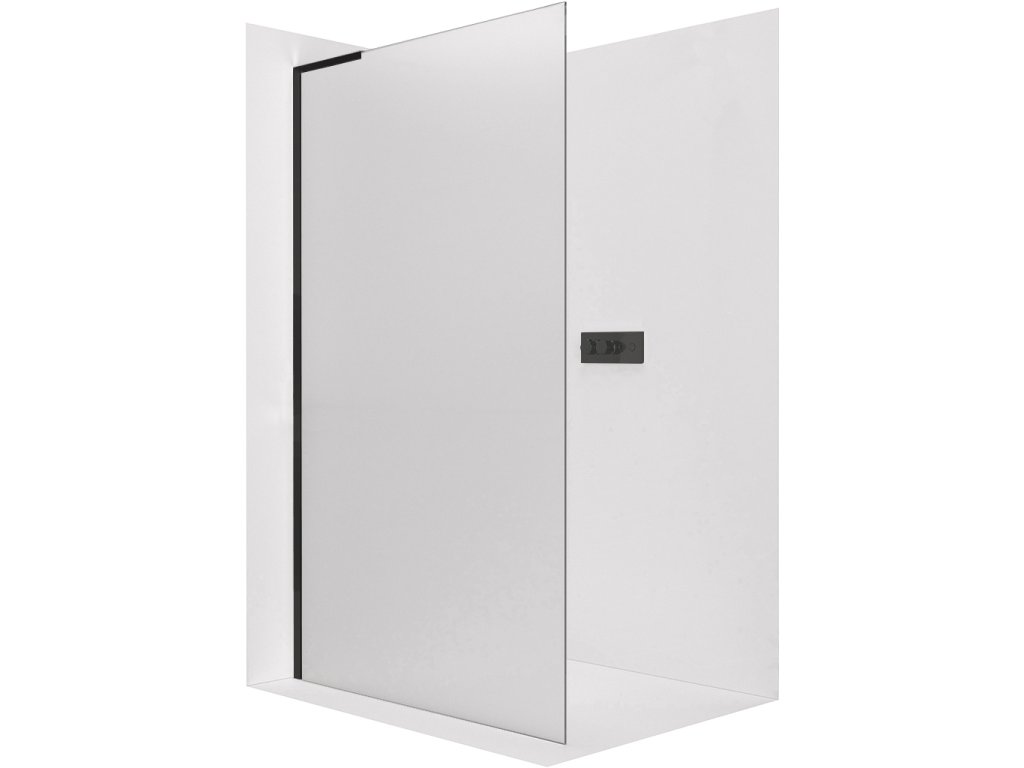 CERANO - Kabina prysznicowa typu walk-in Onyx L-lewy wspornik - 8 mm - czarny mat, szkło mrożone - 70x200 cm