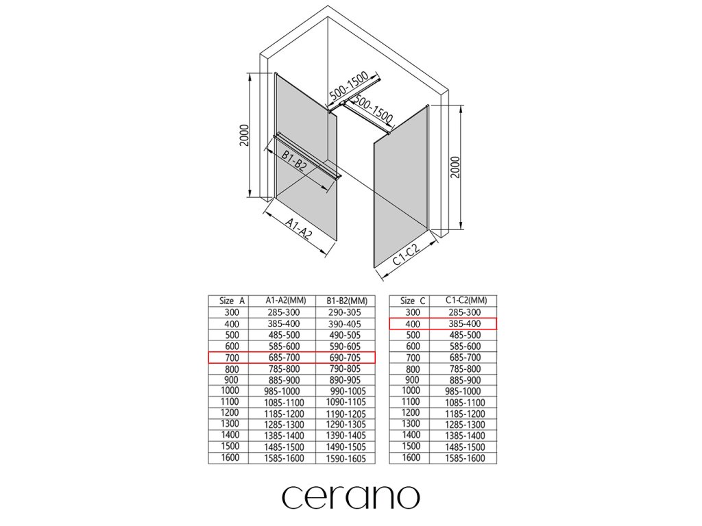 W ramach tej serii oferujemy szeroki wybór wymiarów, aby sprostać zróżnicowanym potrzebom naszych klientów. Wszystkie kabiny prysznicowe, drzwi i parawany Cerano są w pełni kompatybilne z brodzikami Cerano o tych samych wymiarach, co zapewnia bezproblemowy montaż i idealne dopasowanie. Ponadto kabinę prysznicową można elastycznie zamontować – na pasującym brodziku lub bezpośrednio na podłodze, w zależności od preferencji i wyposażenia łazienki.