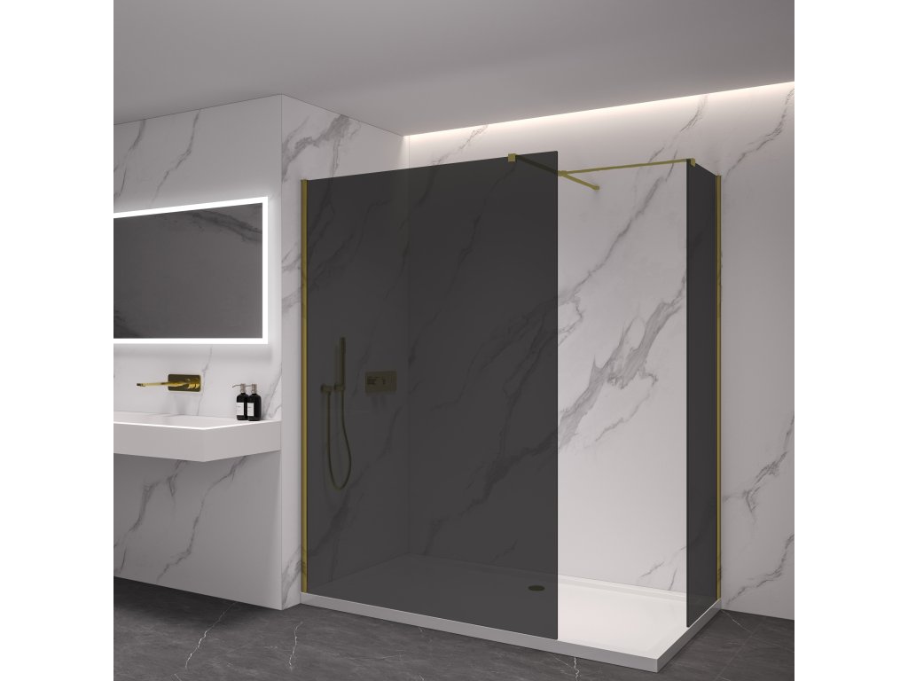 CERANO - Kabina prysznicowa typu walk-in Onyx TL/P - 8 mm - wspornik kwadratowy - szczotkowane złoto, szkło grafitowe - 70x30x200 cm
