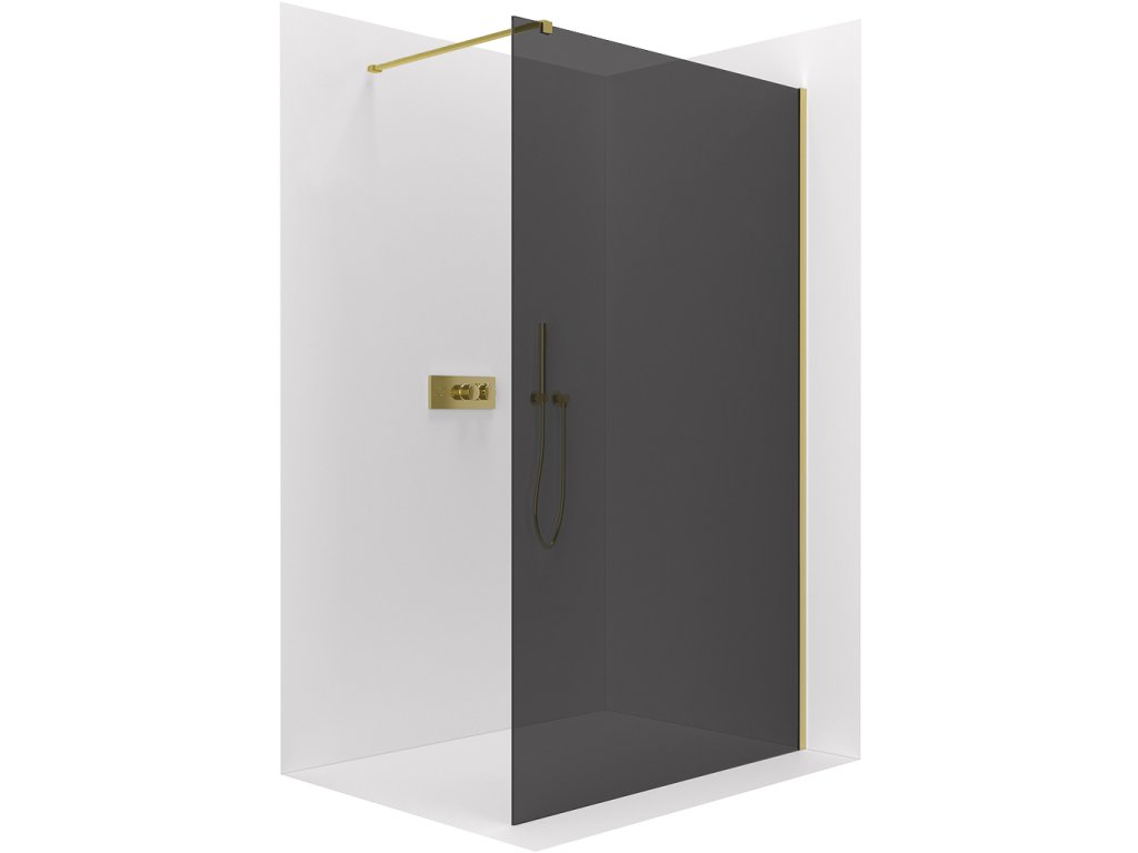 CERANO - Ścianka kabiny prysznicowej typu walk-in Onyx Cube L/P - 8 mm - wspornik kwadratowy - złoto, szkło grafitowe - 70x200 cm