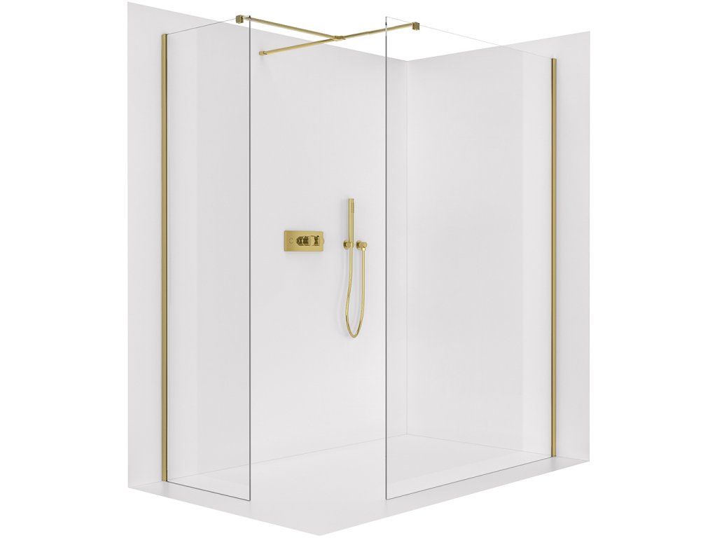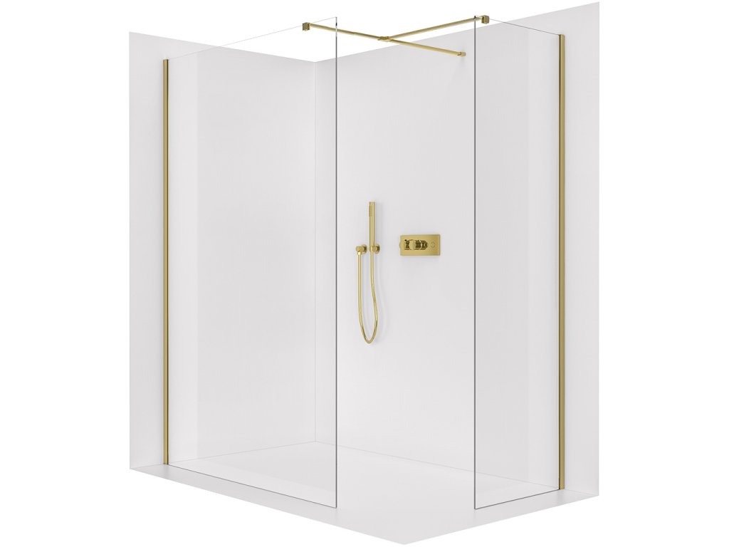 CERANO - Ścianka kabiny prysznicowej typu walk-in Onyx TL/P - 8 mm - wspornik kwadratowy - złoty, szkło transparentne - 70x60x200 cm