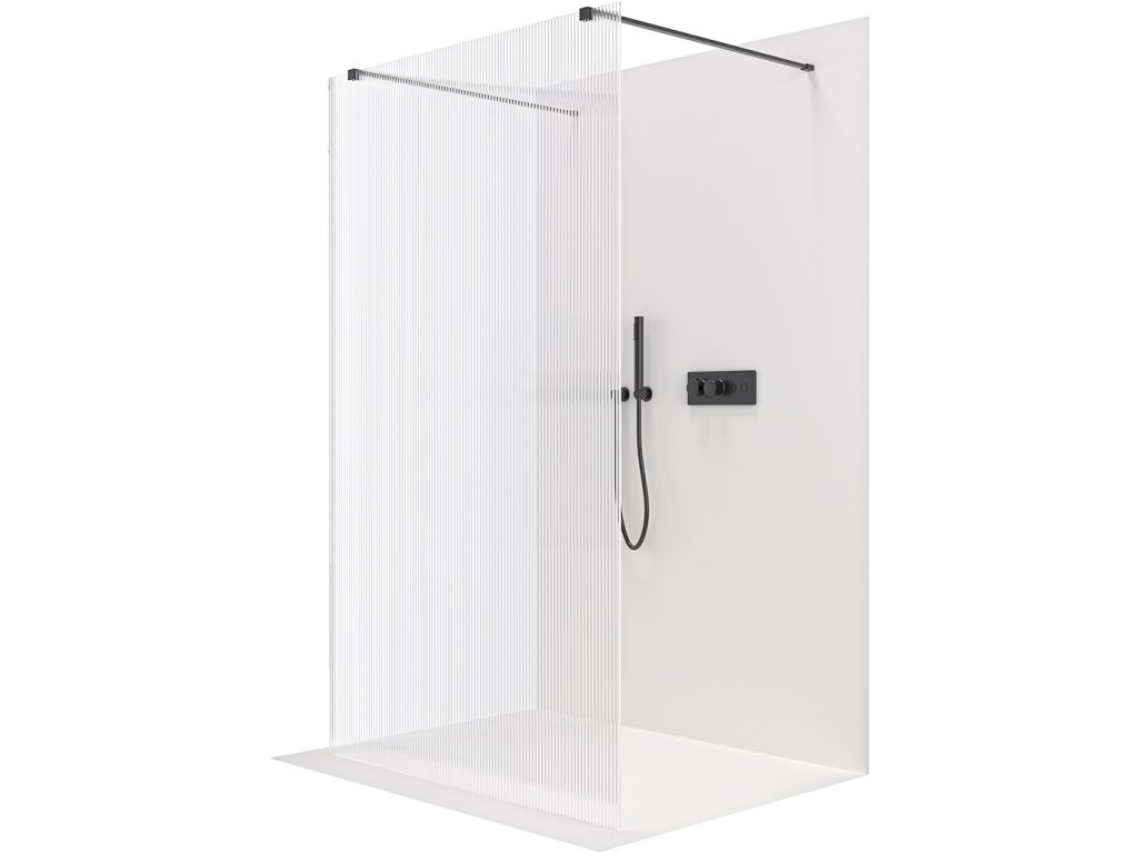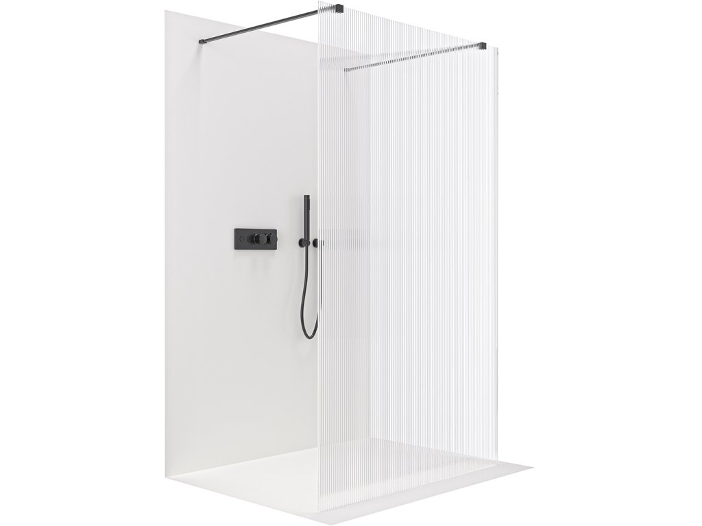 CERANO - Kabina prysznicowa typu Walk-in Onyx Duo L/R - 8 mm - wspornik kwadratowy - matowa czerń, szkło ryflowane - 80x200 cm