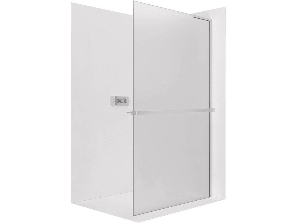CERANO - Kabina prysznicowa typu walk-in Onyx L-prawa rozpórka - 8 mm + półka/uchwyt na ręcznik - chrom, szkło mrożone - 80x200 cm