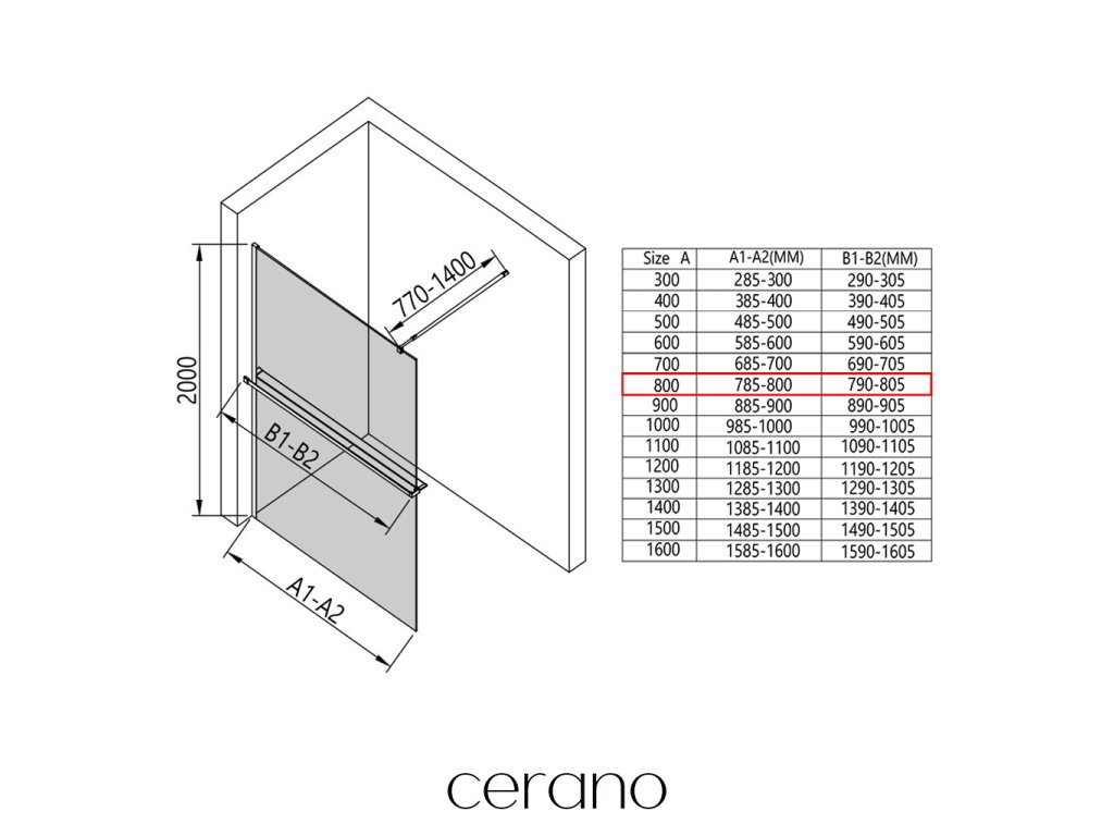 W ramach tej serii oferujemy szeroki wybór wymiarów, aby sprostać zróżnicowanym potrzebom naszych klientów. Wszystkie kabiny prysznicowe, drzwi i parawany Cerano są w pełni kompatybilne z brodzikami Cerano o tych samych wymiarach, co zapewnia bezproblemowy montaż i idealne dopasowanie. Ponadto kabinę prysznicową można elastycznie zamontować – na pasującym brodziku lub bezpośrednio na podłodze, w zależności od preferencji i wyposażenia łazienki.
