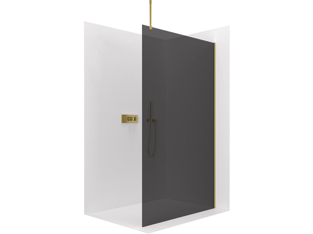 CERANO - Ścianka kabiny prysznicowej Onyx Top Round L/P - 8 mm - wspornik okrągły - złoto, szkło grafitowe - 80x200 cm