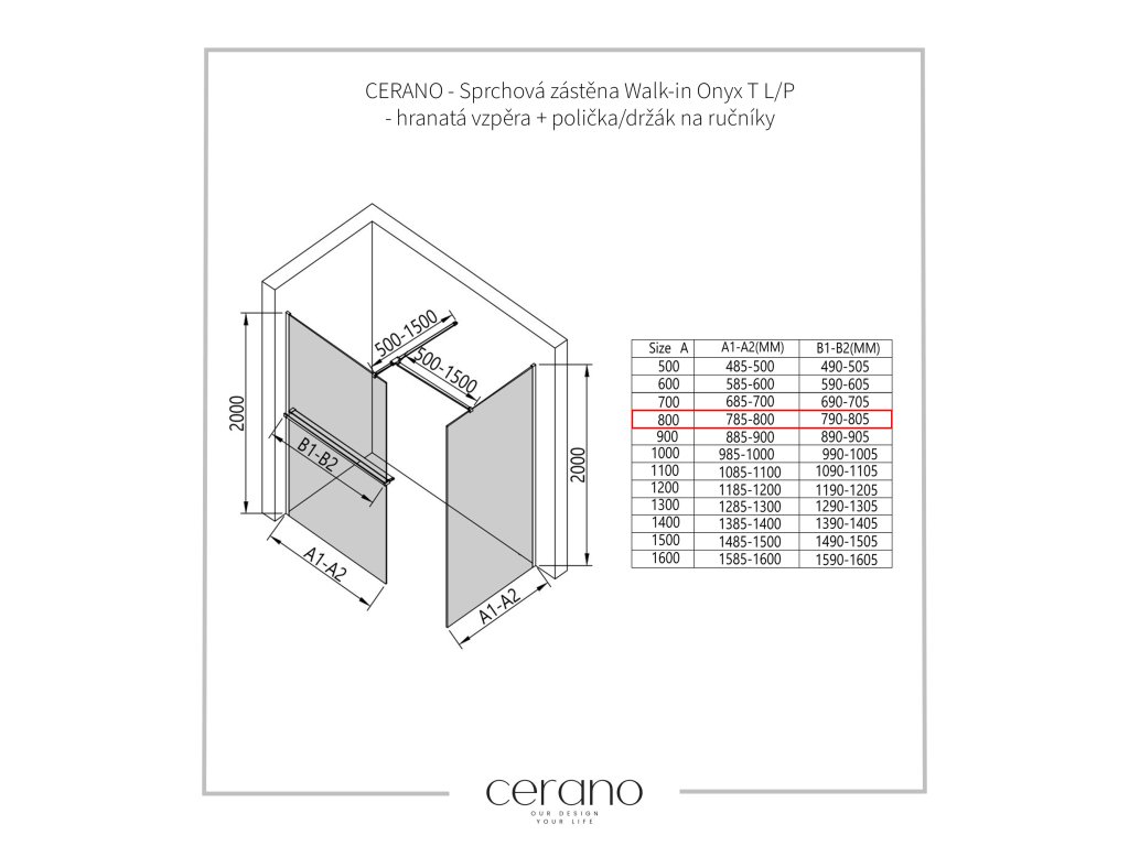 W ramach tej serii oferujemy szeroki wybór wymiarów, aby sprostać zróżnicowanym potrzebom naszych klientów. Wszystkie kabiny prysznicowe, drzwi i parawany Cerano są w pełni kompatybilne z brodzikami Cerano o tych samych wymiarach, co zapewnia bezproblemowy montaż i idealne dopasowanie. Ponadto kabinę prysznicową można elastycznie zamontować – na pasującym brodziku lub bezpośrednio na podłodze, w zależności od preferencji i wyposażenia łazienki.