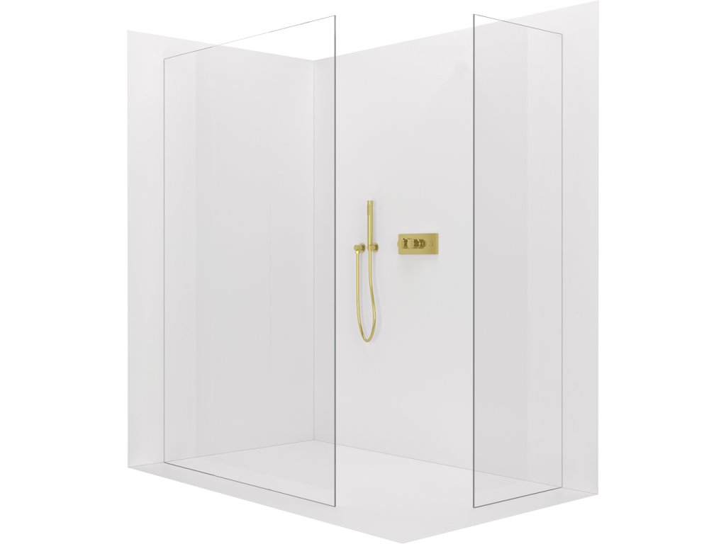 CERANO - Kabina prysznicowa typu walk-in Crystal TL/P - 8 mm - system bezpodporowy - szczotkowane złoto, szkło transparentne - 90x60x200 cm