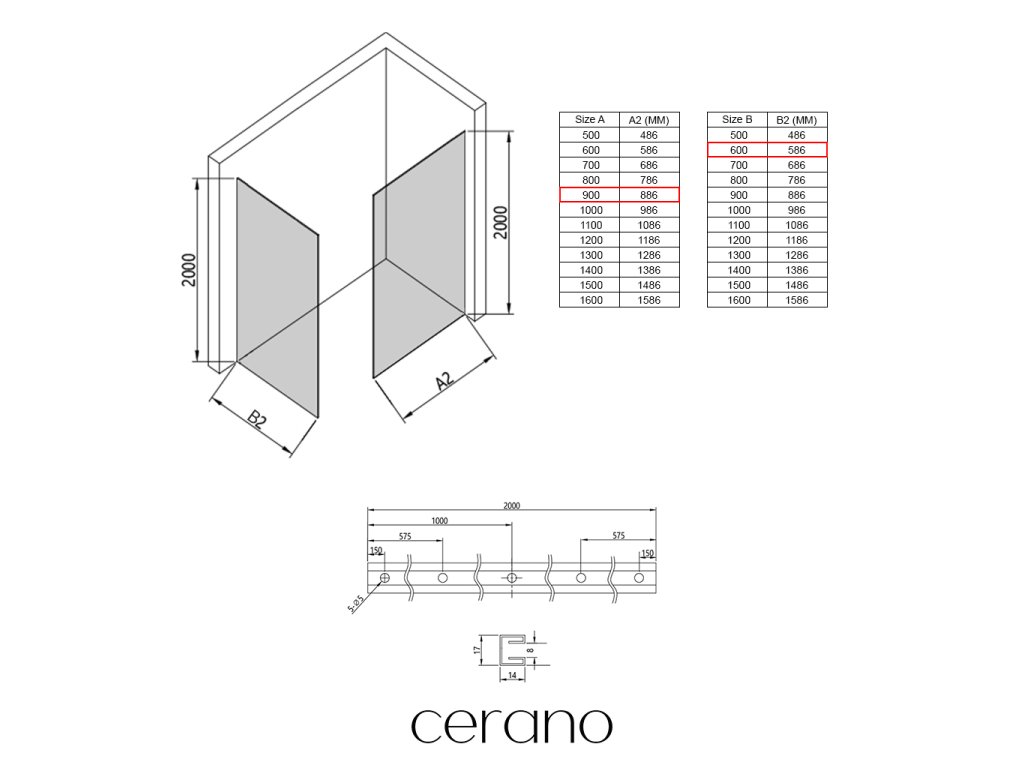 W ramach tej serii oferujemy szeroki wybór wymiarów , aby sprostać zróżnicowanym potrzebom naszych klientów. Wszystkie kabiny prysznicowe, drzwi i parawany Cerano są w pełni kompatybilne z brodzikami Cerano o tych samych wymiarach, co zapewnia bezproblemowy montaż i idealne dopasowanie. Ponadto, kabinę prysznicową można elastycznie zamontować – na pasującym brodziku lub bezpośrednio na podłodze , w zależności od preferencji i wyposażenia łazienki.