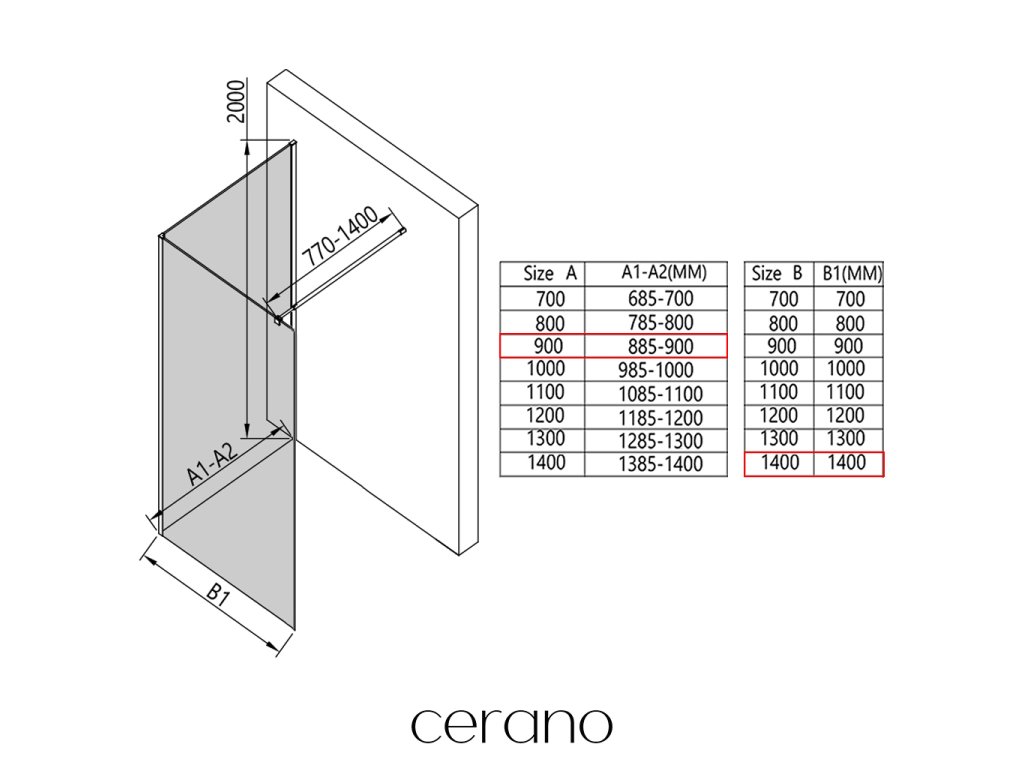 W ramach tej serii oferujemy szeroki wybór wymiarów, aby sprostać zróżnicowanym potrzebom naszych klientów. Wszystkie kabiny prysznicowe, drzwi i parawany Cerano są w pełni kompatybilne z brodzikami Cerano o tych samych wymiarach, co zapewnia bezproblemowy montaż i idealne dopasowanie. Ponadto kabinę prysznicową można elastycznie zamontować – na pasującym brodziku lub bezpośrednio na podłodze, w zależności od preferencji i wyposażenia łazienki.