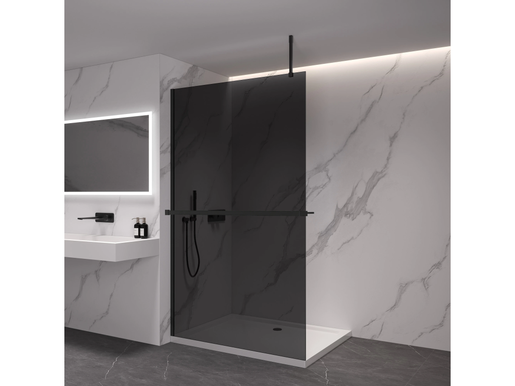 Parawan prysznicowy wykonany jest z hartowanego szkła o grubości 10 mm, co zapewnia nie tylko bezpieczeństwo, ale i długą żywotność. Szkło hartowane jest mniej podatne na zarysowania i stłuczenia, dzięki czemu zachowa funkcjonalność przez wiele lat. Grafitowy panel szklany tworzy efekt przydymionego szkła , co maksymalizuje poczucie prywatności podczas kąpieli. Szkło posiada powłokę Easy Clean , która minimalizuje osadzanie się kamienia i znacznie ułatwia czyszczenie. Przed montażem zalecamy aklimatyzację w warunkach domowych przez 48 godzin, szczególnie w miesiącach zimowych.