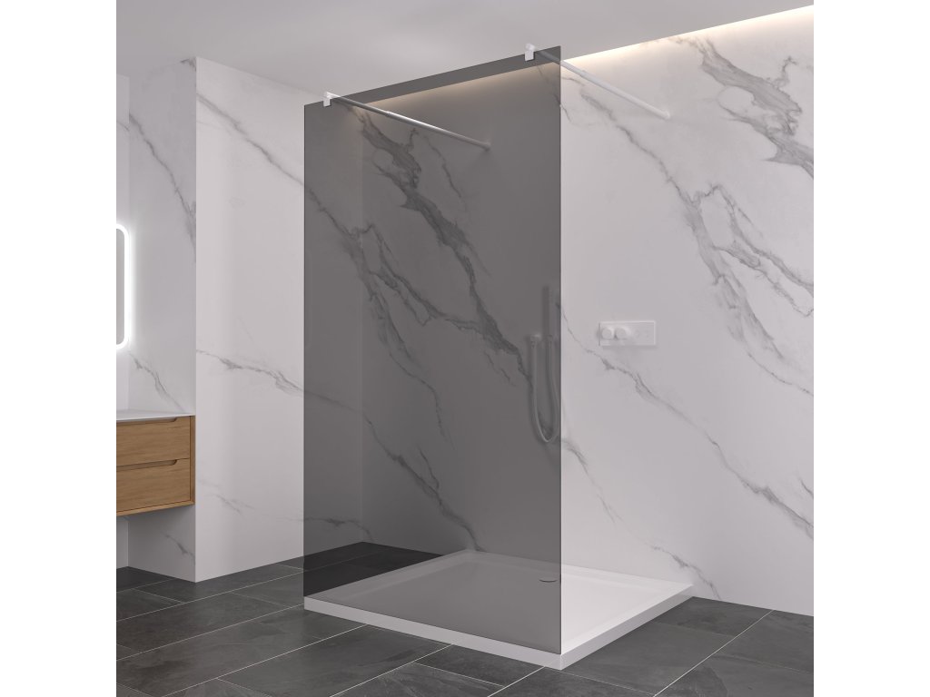 CERANO - Parawan prysznicowy typu walk-in Onyx Duo L/P - 8 mm - wspornik okrągły - matowa biel, szkło grafitowe - 90x200 cm